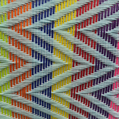 El marco, de hierro forjado, soldado a mano y tratado anti-rusto, se cubre luego con un hilo de pesca de polipropileno tejido.