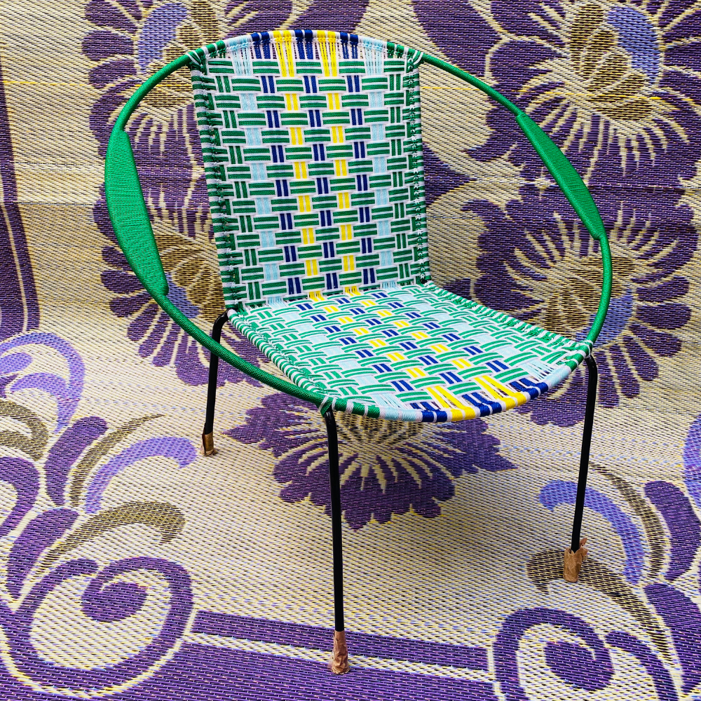 Chaise Ronde Basse - Vert, Bleu et Jaune - Rayés